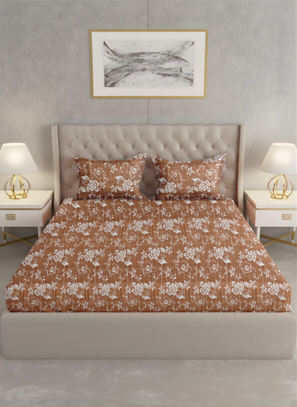 The Ackross Bare Basics Floral Queen Bedsheet is made from 100% cotton with a comfortable 104 TC weave, offering breathable softness for everyday comfort. Sized at 224 × 254 cms, it fits queen beds perfectly and includes matching pillow covers (46 × 69 cms). Easy to maintain and designed for daily living, it brings effortless style and dependable comfort to your bedroom—Ackross, Your Home’s Better Half.