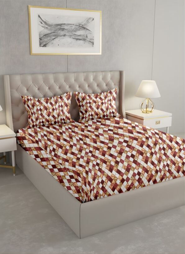 The Ackross Bare Basics Geometric Queen Bedsheet is crafted from 100% cotton with a comfortable 104 TC weave, offering breathable softness for everyday use. Sized at 224 × 254 cms, it provides a smooth fit for queen beds and includes matching pillow covers (46 × 69 cms). Designed for durability, easy care, and modern living, it delivers dependable comfort night after night—Ackross, Your Home’s Better Half.