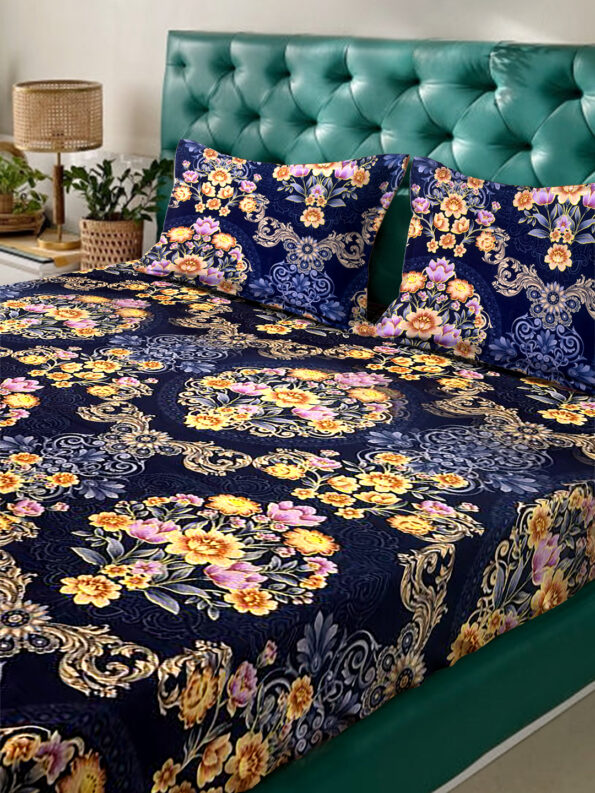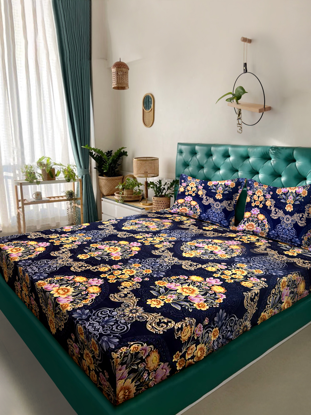 Blossom Royale Floral Deep-Blue Double Bedsheets