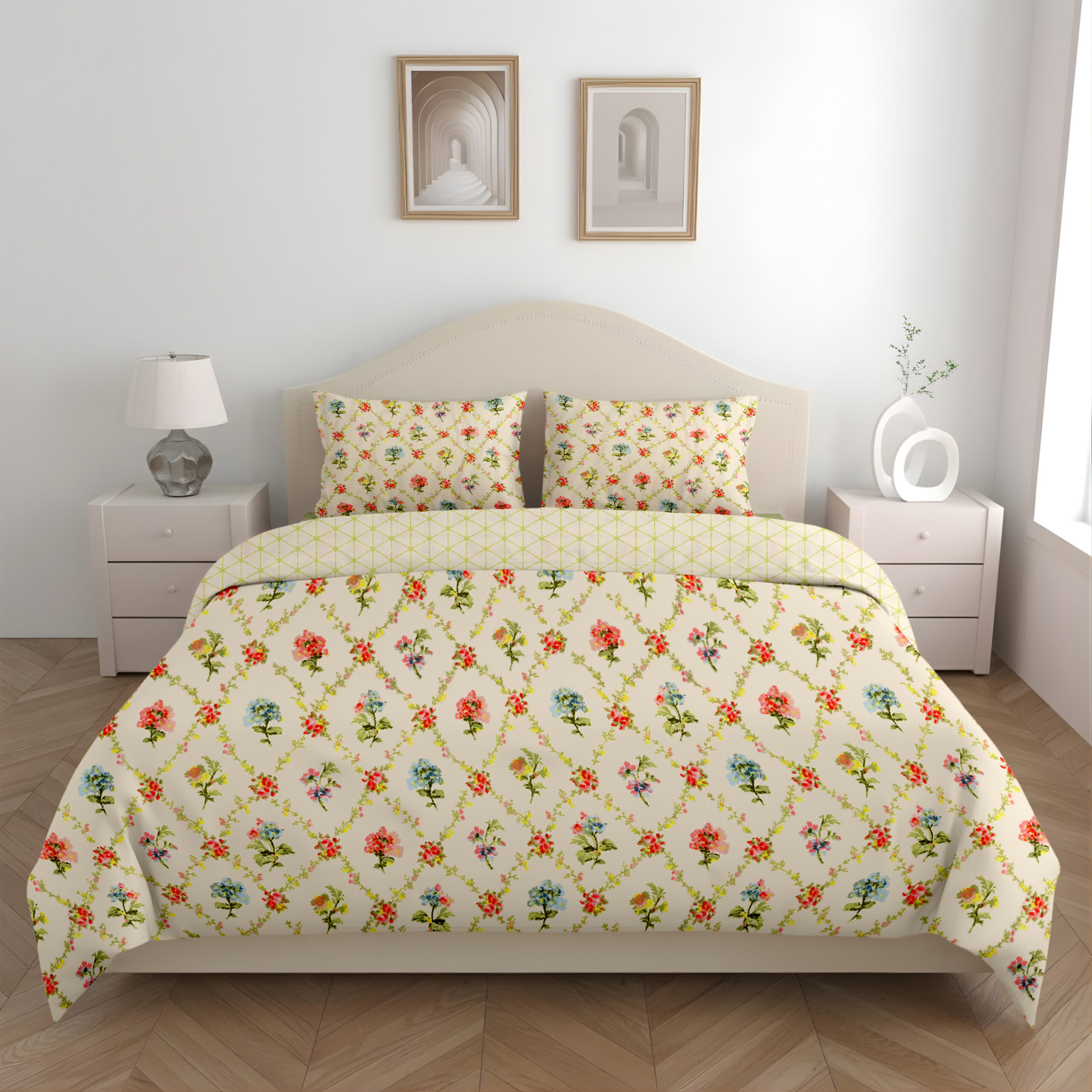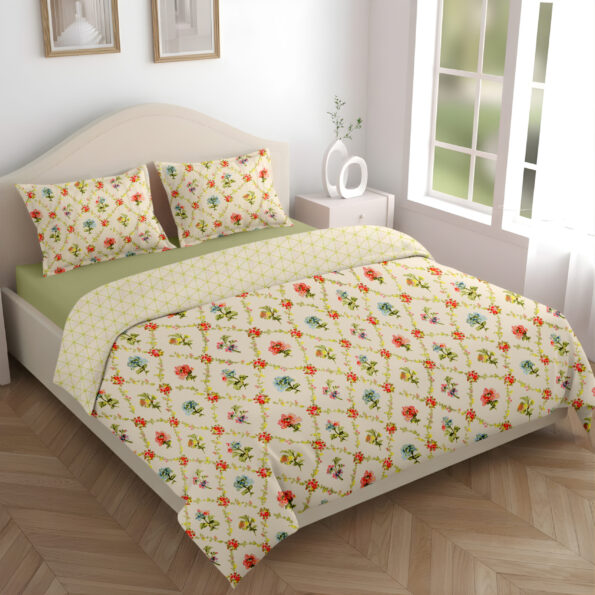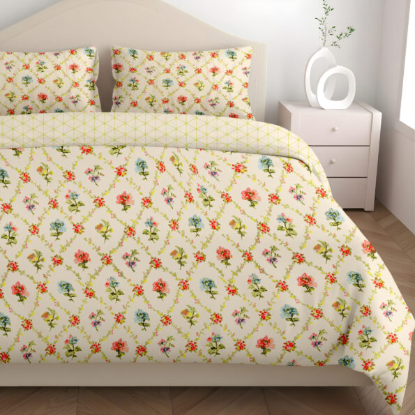 Dual Comfort Floral Cream Single Bed Dohar