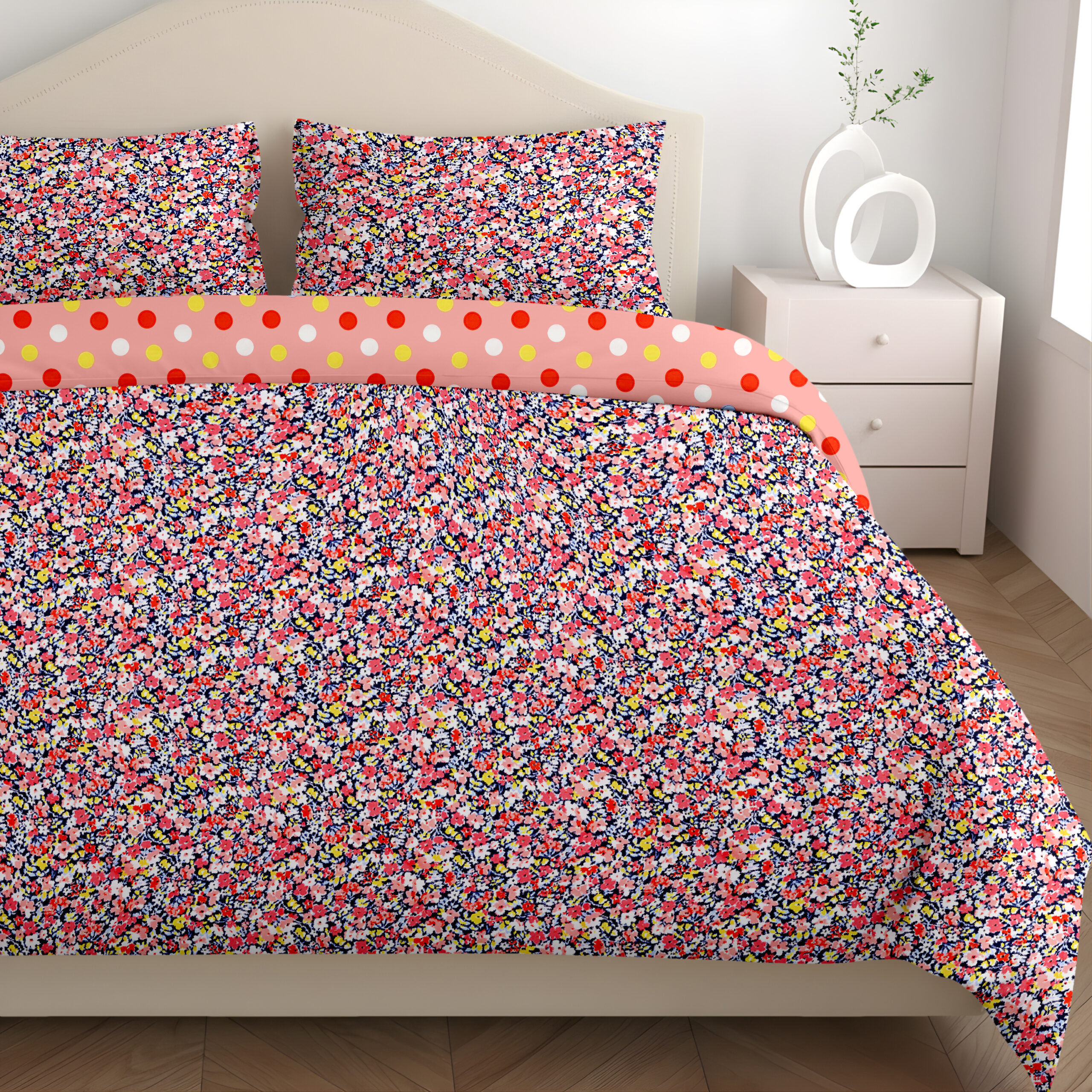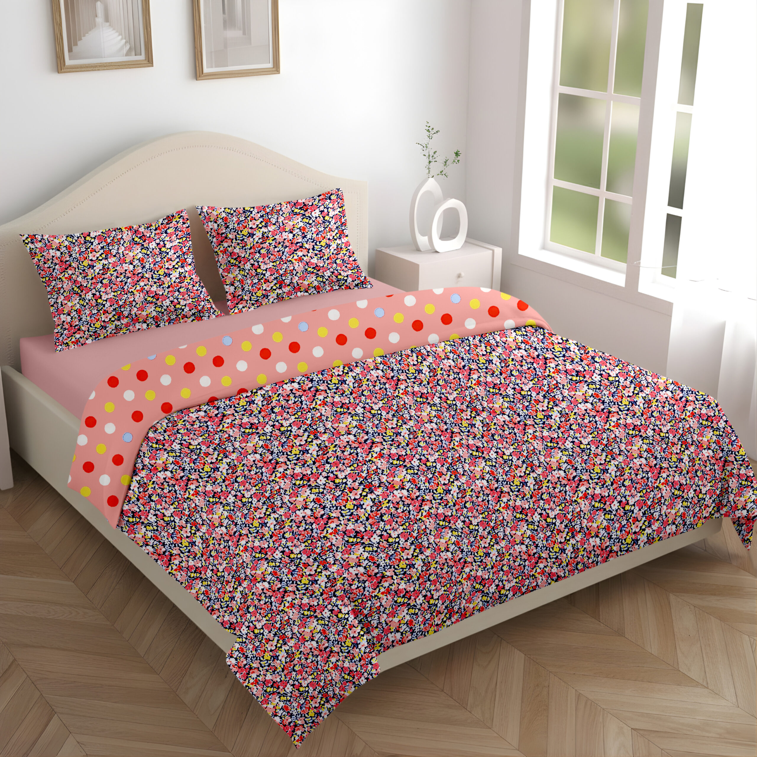 Dual Comfort Floral Peach Red Single Bed Dohar