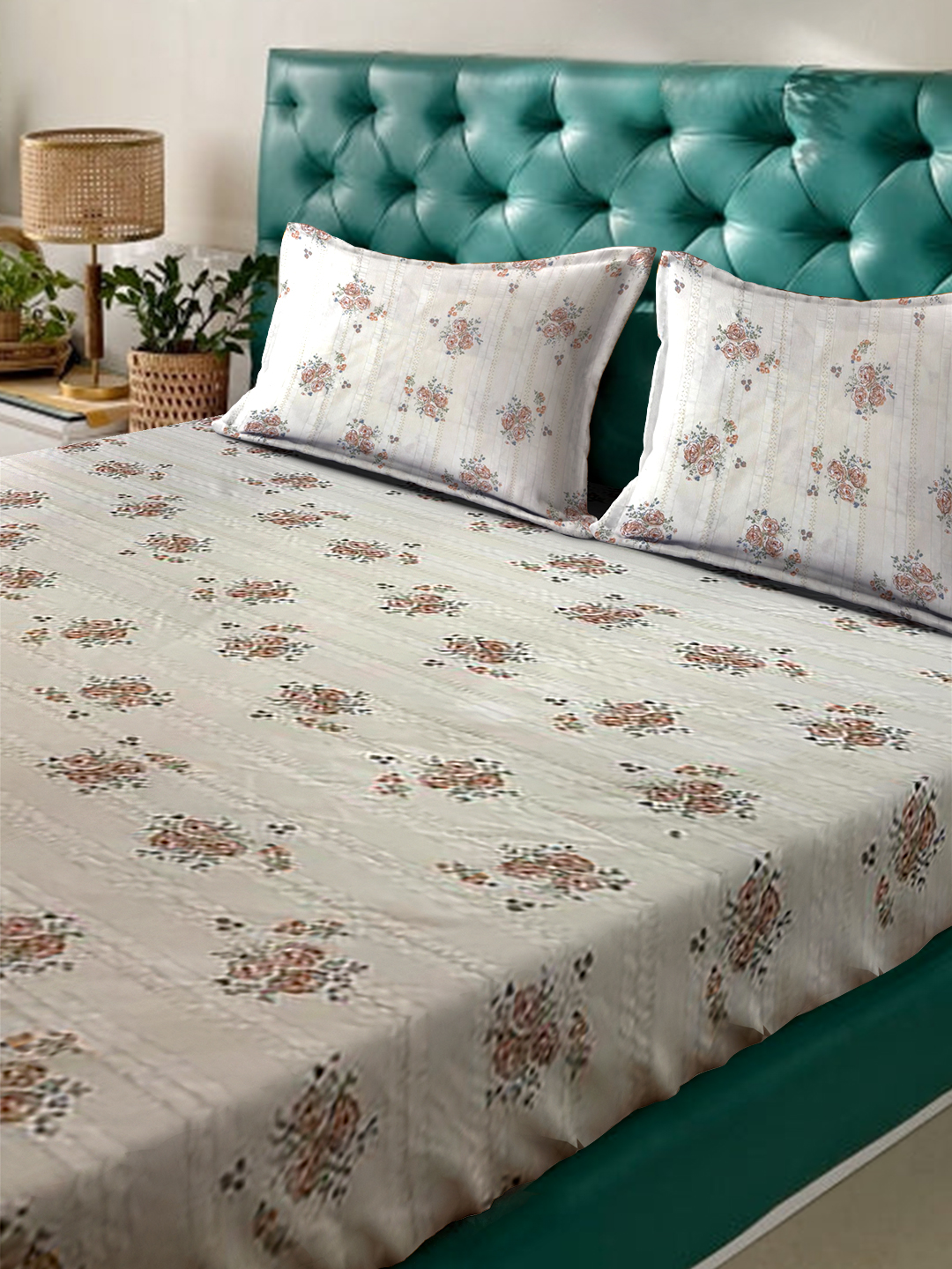 Fusion Collection Floral Cream-Rea Queen Bedsheets