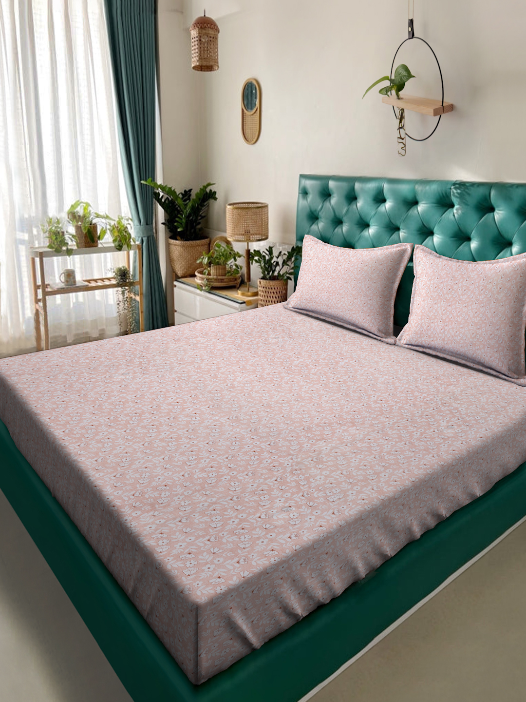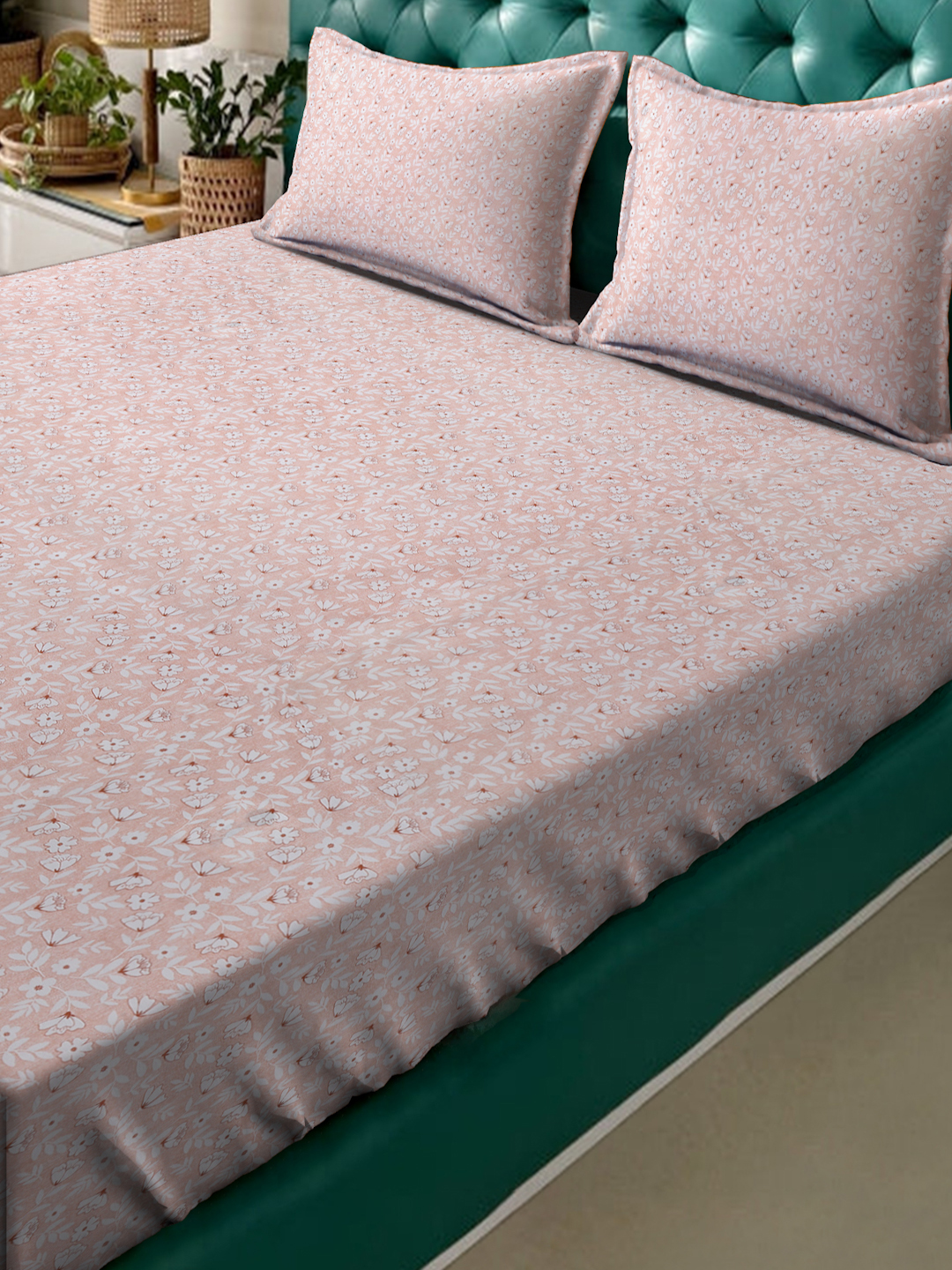 Fusion Collection Floral Dark-Peach-white Queen Bedsheets