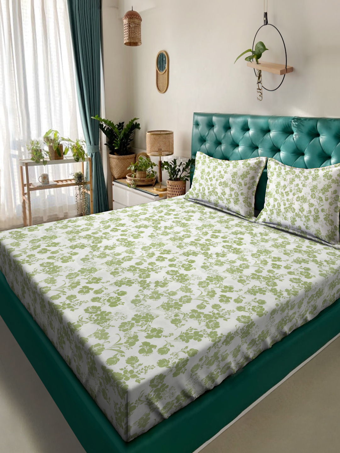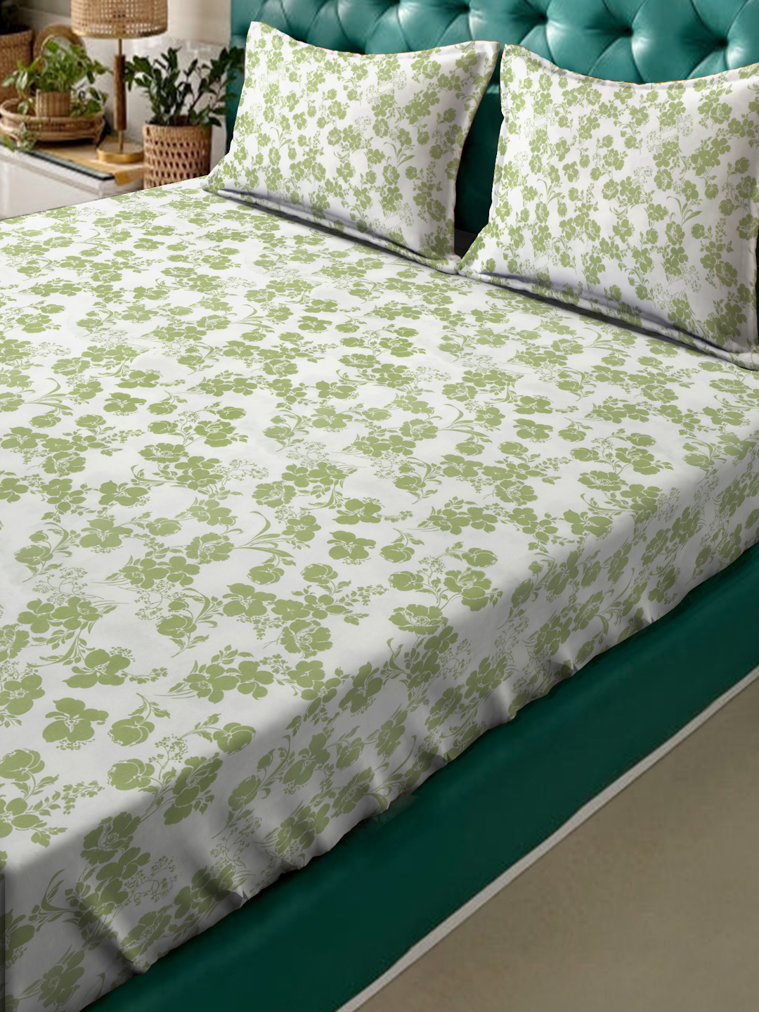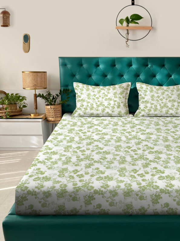 Fusion Collection Floral White-Green Queen Bedsheets
