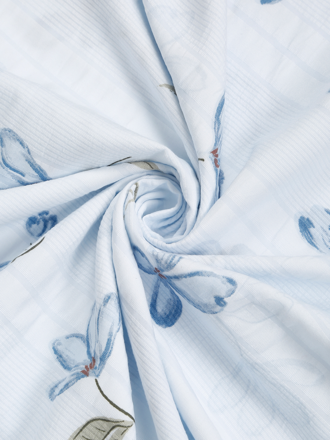 Fusion Collection Floral White-light-blue Queen Bedsheets