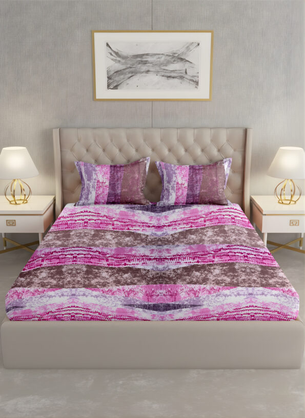 The Ackross Indulgence Geometric King Bedsheet is crafted from 100% cotton with a premium 180 TC weave, offering breathable softness and long-lasting comfort. Sized at 274 × 274 cms, it provides generous coverage for king beds and includes matching pillow covers (46 × 69 cms). Designed with a modern geometric aesthetic and easy-care durability, it delivers everyday luxury—Ackross, Your Home’s Better Half.
